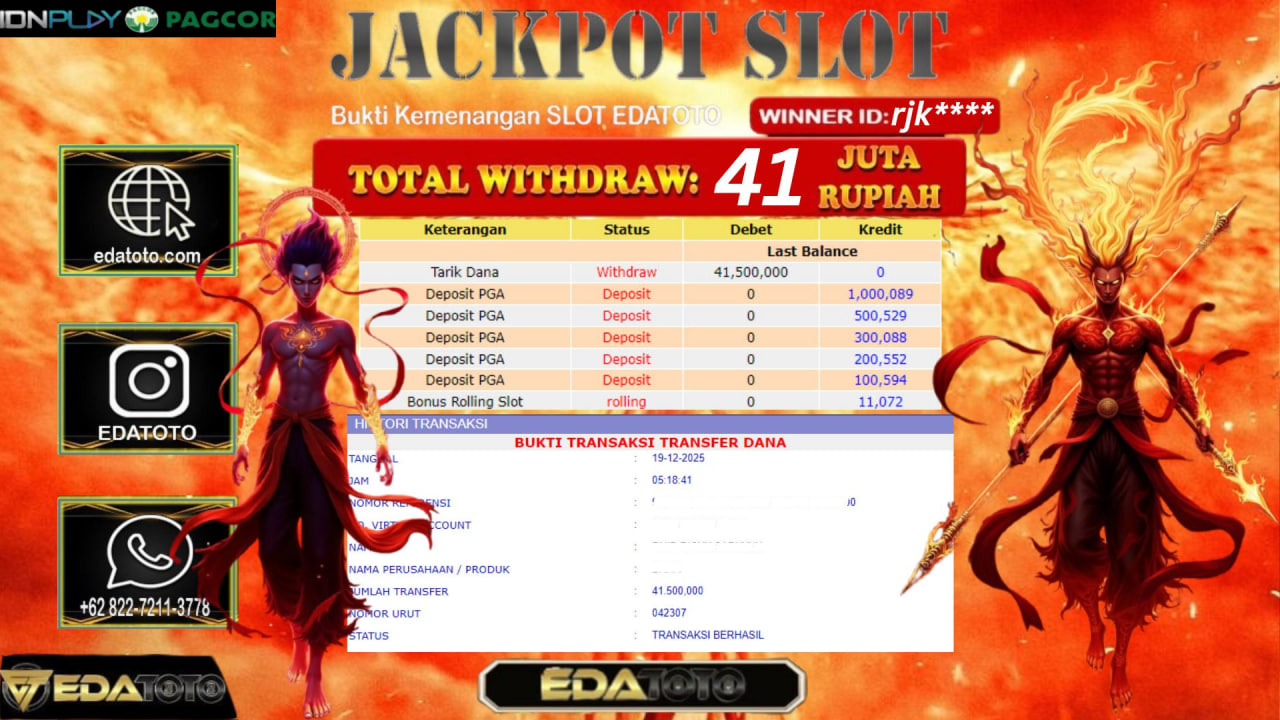 Selamat Kepada Pemilik user ID : dio1** Hari/Tanggal :kamis/ 19, Desember 2025 Jackpot : Rp. 75,500,000 JT Withdraw : 75,500,000 . . .