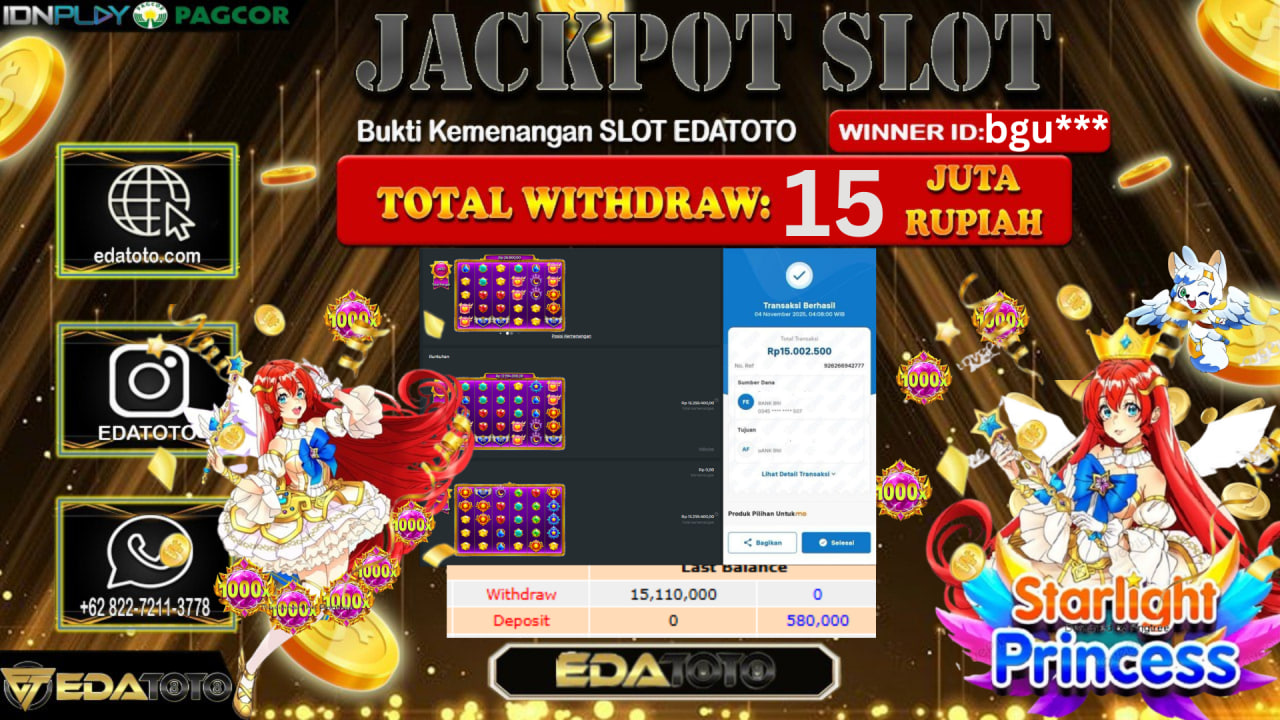 Selamat Kepada Pemilik user ID : Bgug*** Hari/Tanggal : Sabtu / 3, November 2025 Jackpot : Rp. 19,211,900 JT Withdraw :15,000,000 . . .
