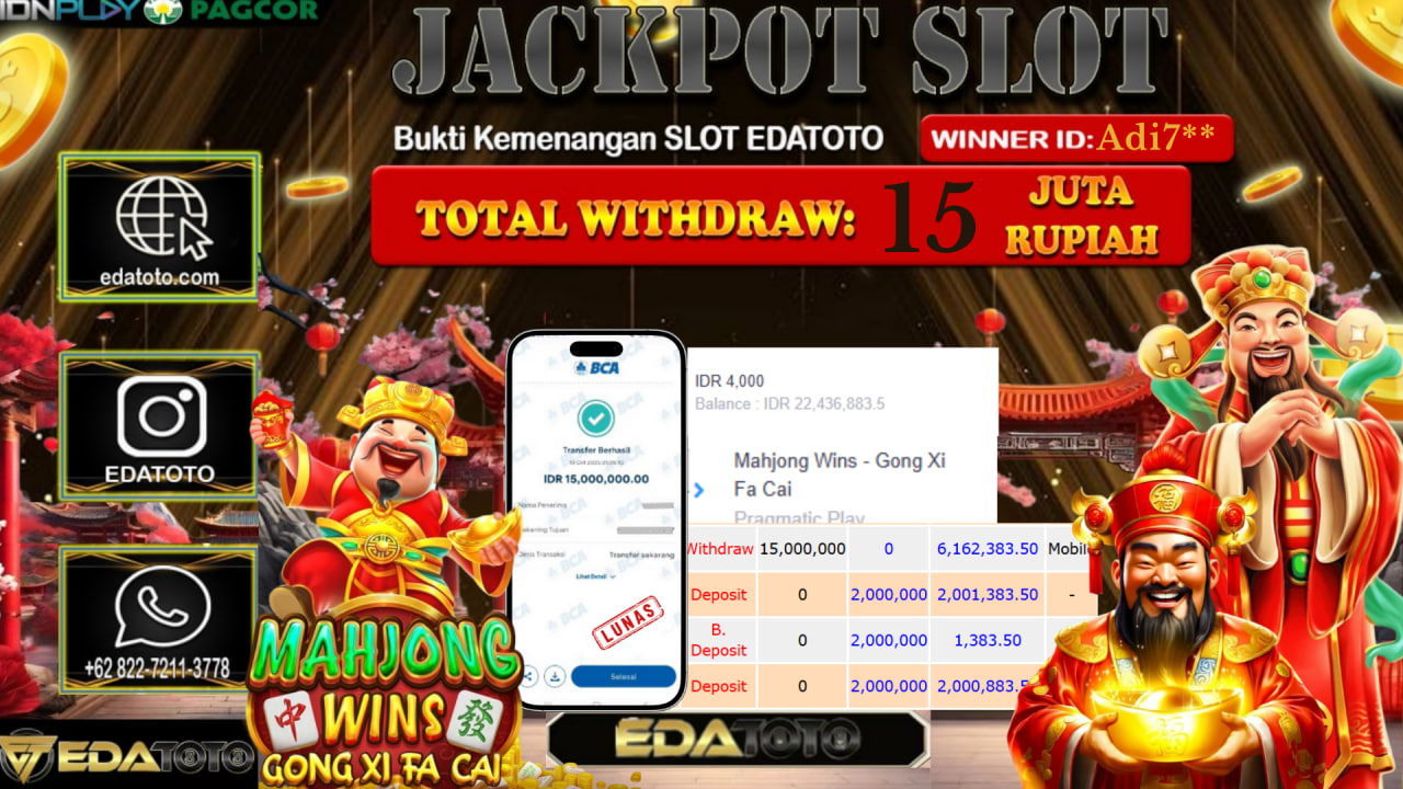 Selamat Kepada Pemilik user ID : Adi7** Hari/Tanggal : Senin/ 20, Oktober 2025 Jackpot : Rp. 15.000.000 JT Permainan : . . .