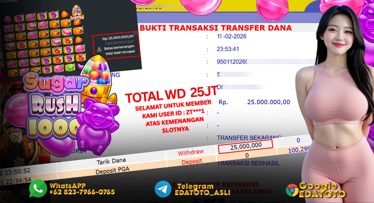 Selamat Kepada Pemilik user ID : zt***1 Hari/Tanggal : Rabu/ 11 februari 2026 Jackpot : Rp.25,000,000 JT Withdraw : 25,000,000 . . .